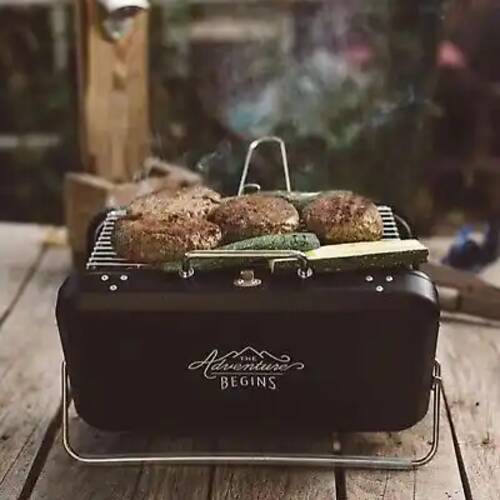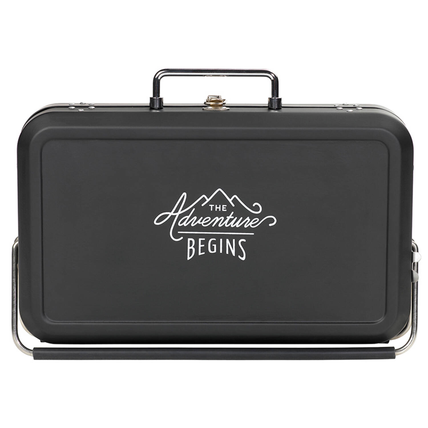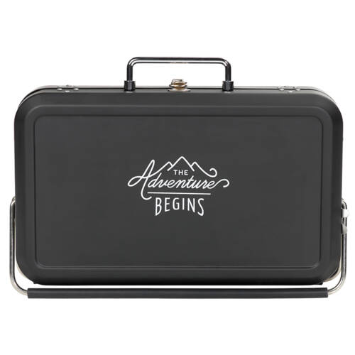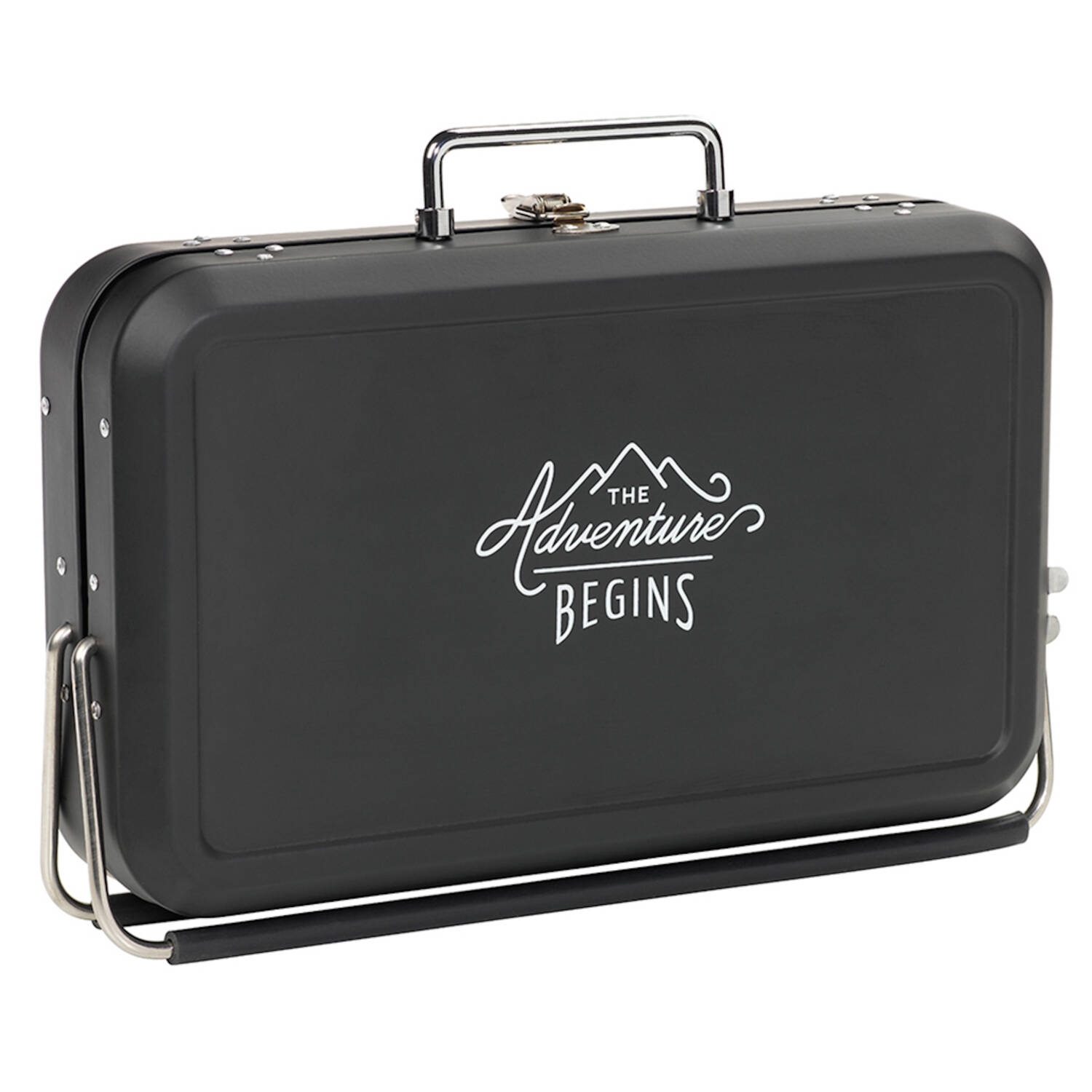 Tento mini čierny gril z nehrdzavejúcej ocele v tvare kufríka je prenosný a ľahký, ideálny na kempovanie, pláž, festivaly alebo iné vonkajšie dobrodružstvá. Vkusne navrhnutý gril je štýlový a zároveň praktický. Zabalený v elegantnej krabici vo vintage štýle je pripravený na darovanie.
