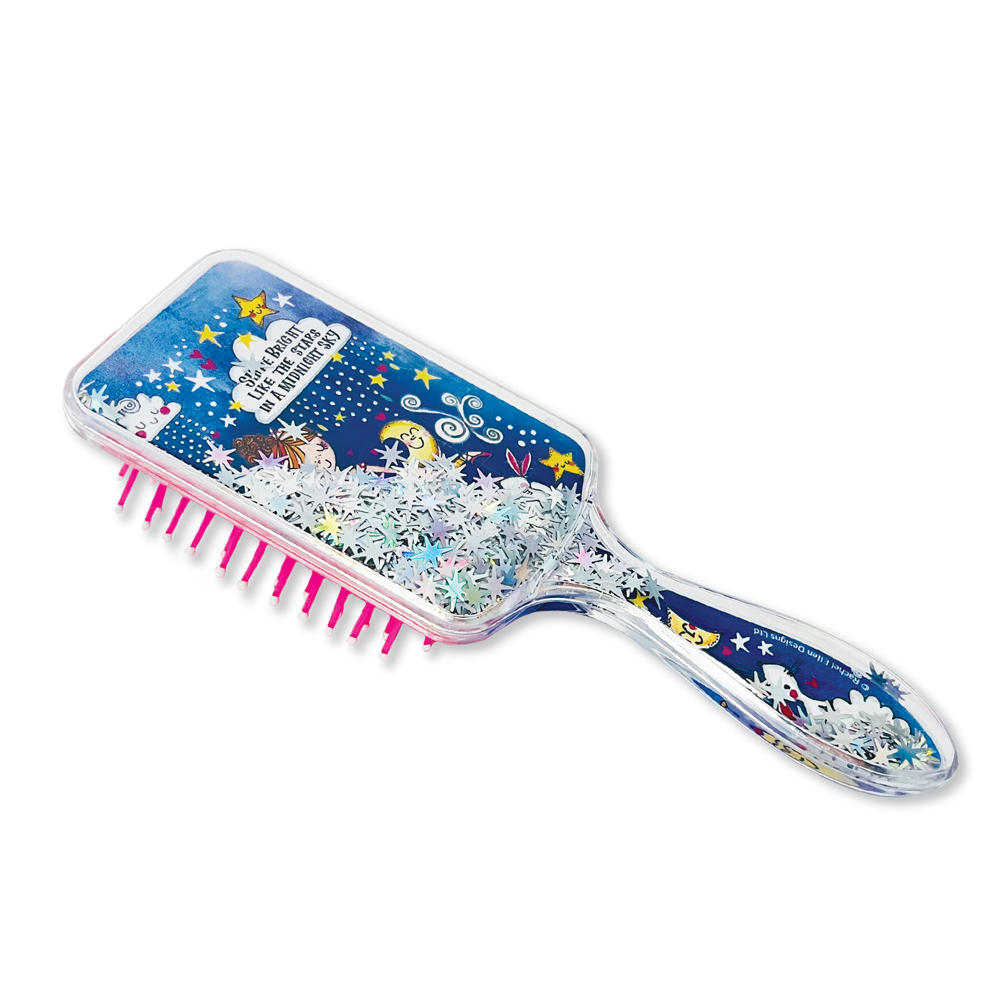 Detská kefa na vlasy, ktorá sa ľahko drží, dobre rozčesáva vlasy a má gumový polstrovaný povrch pre väčšie pohodlie. Na zadnej strane každej kefy sú trblietavé hviezdy, ktoré sa pohybujú a vytvárajú magický efekt. Má krásny dizajn s tanečným motívom. Dodávame v darčekovej krabičke.