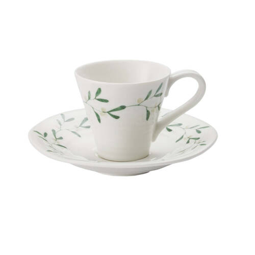 Jemne krémové šálky a podšálky na espresso Sophie Conran sú krásne na vaše espresso, ako aj na prezentáciu pekných malých dezertov. Sú zdobené romantickým vzorom imela a pôsobia jemne sviatočným dojmom, ale vyzerajú dobre aj počas celého roka.