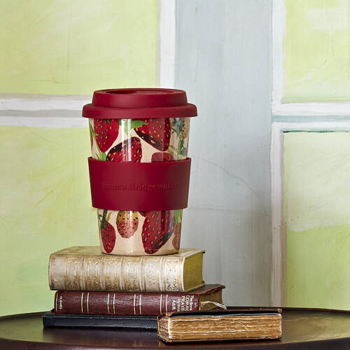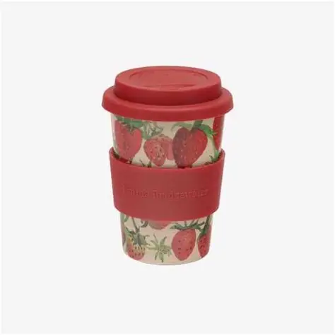Cestovný hrnček z ryžových šupiek, dizajn jahody