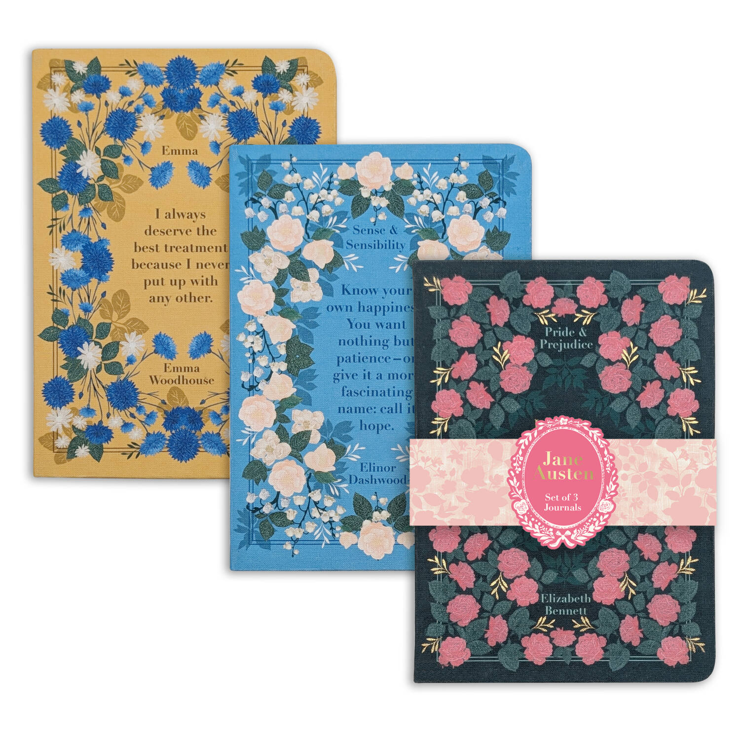 Táto sada troch zápisníkov formátu B6 je inšpirovaná románom Jane Austenovej Pýcha a predsudok. Vďaka väzbe z materiálu s efektom ľanu odrážajú nadčasovú eleganciu Austenovej sveta – sú ideálne na úvahy alebo každodenné poznámky. Svojím prepracovaným knižným vzhľadom vnesú tieto zápisníky na váš písací stôl nádych literárneho čara. Každý zápisník má 64 linkovaných strán.